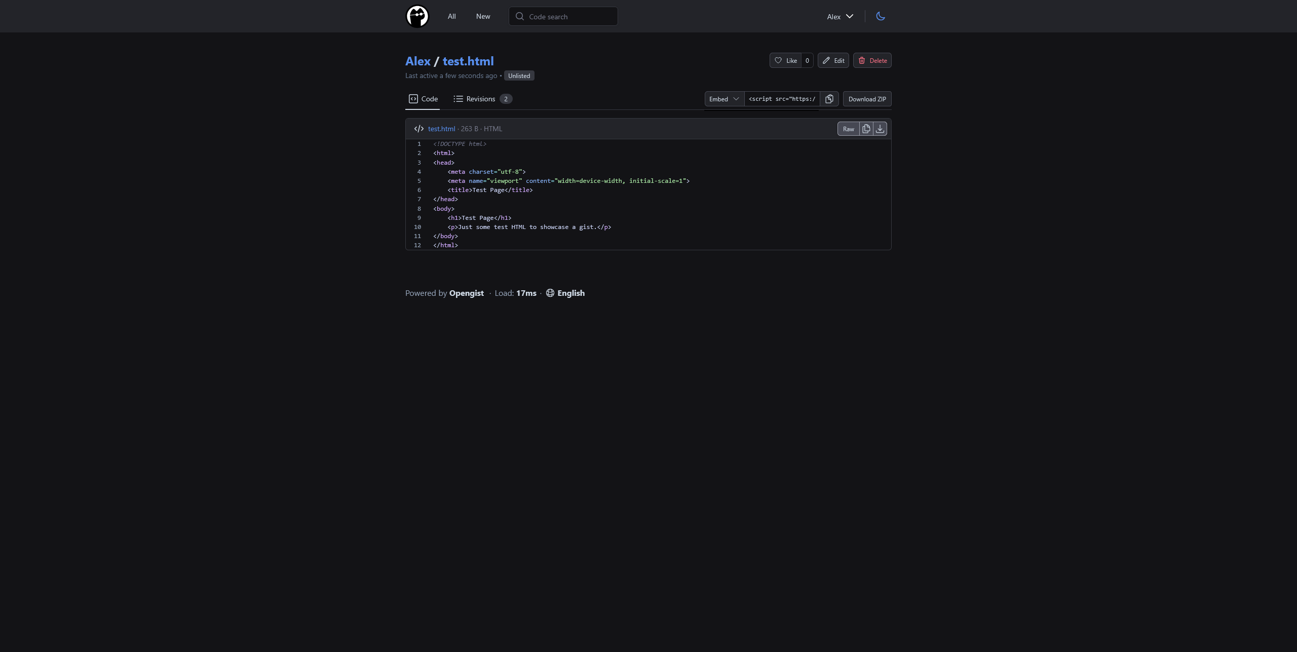 Screenshot of OpenGist on a 1440p monitor, after max-width change